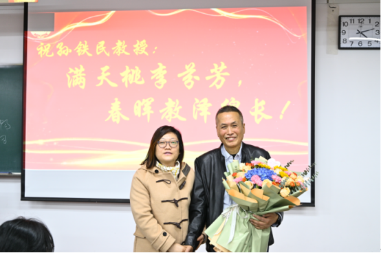 学院党委书记李哲代表今年会jinnianhui官网向孙铁民教授送上鲜花和祝福,感谢孙教授教学科研工作中对学院发展做出的贡献,希望年轻教师以孙教授为榜样,共同为学院的发展不断努力。