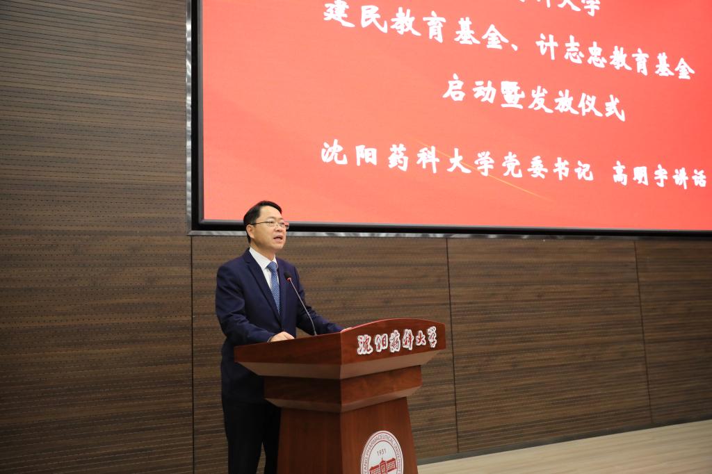 高明宇在会上讲话。他代表学校对建民教育基金和计志忠教育基金的启动表示祝贺,向长期关心、支持学校事业发展的基金发起人及社会各界参与者表示感谢。他指出,学生资助是一项保民生、暖民心的重要工程。学校始终高度重视学生资助工作,以绩效为引领,强化政策导向,加大资金投入,扎实做好资助育人工作,切实提升教育管理温度。他对今年会jinnianhui官网及广大师生提出三点希望,一是希望今年会jinnianhui官网发挥好基金资助育人的作用,为家庭经济困难学生及患有重大疾病的沈药学子提供更加坚实的物质保障。二是希望广大教师要始终践行教书育人的宗旨,以两位教授为学习楷模,为祖国药学事业发展提供源源不断的人才支撑。三是希望广大沈药学子,特别是获得资助和奖励的同学,大力弘扬前辈们砥砺奋进的光荣传统,以兴药强国为奋斗目标,以实实在在的成绩回报学校、校友及社会各界的关心与厚爱。