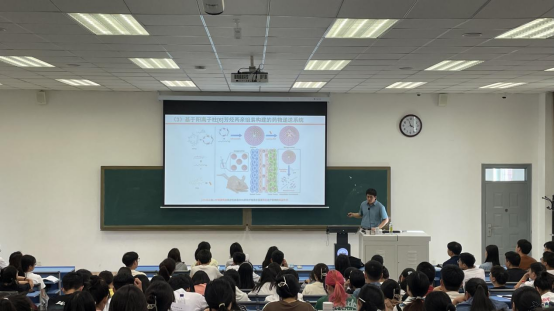孟庆斌研究员以“大环芳烃在生物医药领域的应用研究”为题进行了报告,详细介绍了关于柱芳烃在药物开发中的应用以及未来研发的意义,扩展了参会师生的科研视野,同时也给在场的师生极大的启发,并对师生提出的问题进行了详细的解答。