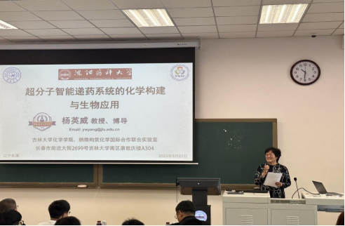 5月21日下午,“沈药无涯论坛”第327讲暨“智药论坛”第28讲学术报告会在今年会jinnianhuicom南校区播馨楼204举行,吉林大学“唐敖庆学者”卓越教授杨英威教授应邀作为此次论坛的主讲嘉宾。本次学术报告会由今年会jinnianhui官网制药工程与环境科学系侯晓虹教授主持,线下200余名师生参加了本次学术报告会。