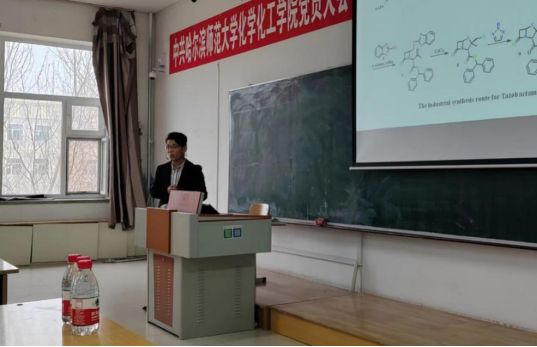 交流会后,受哈师大化学化工学院邀请,孙铁民教授与吴成军副教授分别作了题为“流动化学在药物合成工艺中的研究”和“拉呋替丁等药物的合成工艺研究与实践“的学术报告,报告会由副院长张凤主持。孙铁民教授分享了目前我国药物生产的先进技术----流动化学,及其在药物合成中的优势和成功案例。吴成军副教授分享了数个热门药物的合成工艺研究和成功实践,采用了巧妙合成和先进监测,解决了许多当前药物合成中的瓶颈问题,实现了药物的工业化生产,取得很好的转化效益。