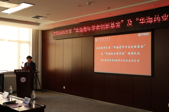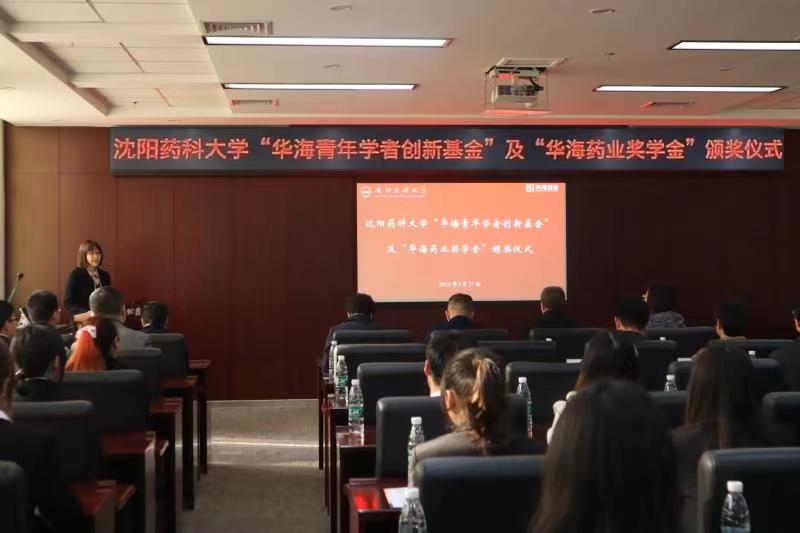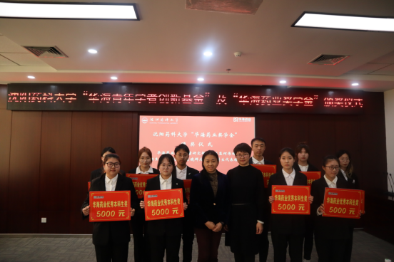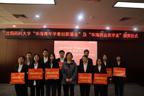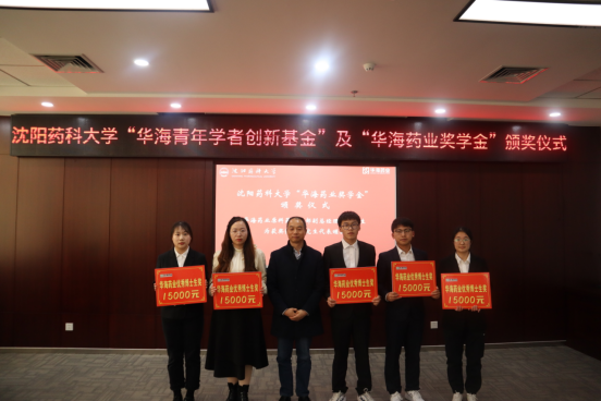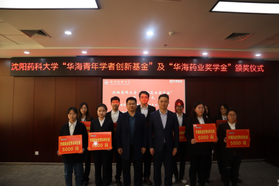 华海药业嘉宾和学校领导为获资助教师和学生颁奖。华海药业人力资源部总监吴野先生为张宇等六名获得“华海青年学者创新基金”的青年教师颁奖。华海药业原料药事业部副总经理朱伟为巩丹丹等五名获得“华海药业奖学金”的博士研究生代表颁奖。今年会jinnianhui官网副院长赵燕芳为王硕等十一名获得“华海药业奖学金”的硕士研究生代表颁奖。华海药业制剂质量研究部高级总监何伟玲、国际销售中心印度业务部总监钟声、国际销售中心人事经理赵仁杰和学校招生就业处副处长董晓辉为王怡等二十名获得“华海药业奖学奖”的本科生代表颁奖。