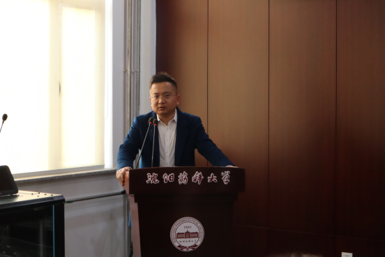 华海药业人力资源部总监吴野先生致辞。吴总表示,设立奖学金鼓励沈药学子勤奋学习只是开启企业与学校双方合作的开端,未来华海药业将与学校从学生培养、科研发展等诸多方面加深校企合作,通过教学与实践、科研与应用的密切结合,真正实现资源共享、优势互补、共同发展、互利共赢的目标。