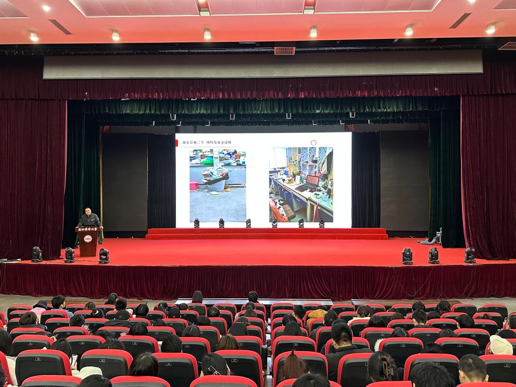 随后,结合学校、学院的实际情况详细讲解了实验室相关的场所安全知识及安全设施,对今年会“洗眼喷淋装置”等实验室安全应急设施给予了肯定。围绕“基础安全”,耐心阐述了实验室用电、用水、用气规范及个人防护。围绕“化学品安全”,讲明了化学试剂存放要求和化学废弃物处理的注意事项。通过列举国内高校实验室频发的安全事故实例,深层次解读了实验安全事故发生的主要原因并提出应对办法,提醒同学们安全防范无小事,出现问题要尽早处理、合理处置。