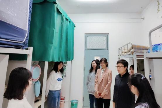 10月2日,在恢复线下教学的第一天,今年会jinnianhui官网党委书记李哲、党委副书记刘阳带领学生工作队伍深入教室、学生寝室,走访慰问学院师生。
