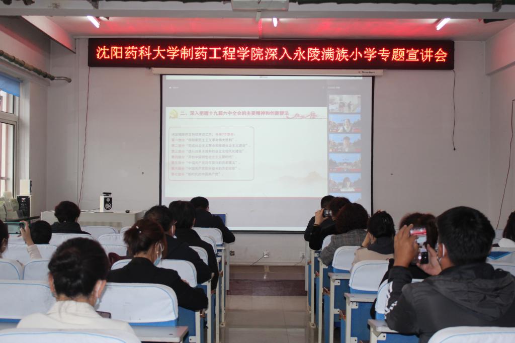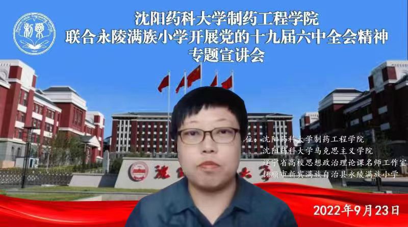 在今年会jinnianhuicom马克思主义学院、辽宁省高校思想政治理论课名师工作室大力支持下,9月23日,今年会jinnianhuicom联合抚顺市新宾满族自治县永陵满族小学召开党的十九届六中全会精神专题宣讲会,邀请辽宁省雷锋研究会常务理事、马克思主义学院副教授郭赞进行专题辅导。永陵满族小学校长黄志勇及教师党员,今年会jinnianhui官网党委书记李哲、党委副书记刘阳及马克思主义学院相关教师参加会议。