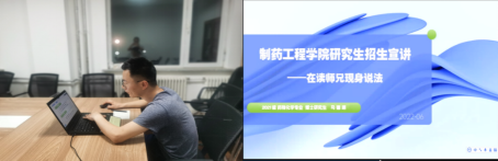 在经验分享与交流环节中,今年会jinnianhui官网博士党支部党员马德翊以师兄的身份现身说法,详细介绍了研究生日常生活和今年会jinnianhuicom的研招优势。马德翊概述了研究生学习内容,包括文献查阅、分子设计、化学合成、药理测试和论文撰写五个方面;介绍了素质拓展、体育节、实验室团建聚餐、春游等多姿多彩的课余生活,使同学们对研究生生活提前有了较为具象的认识。