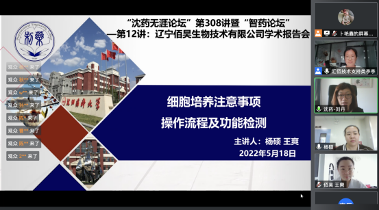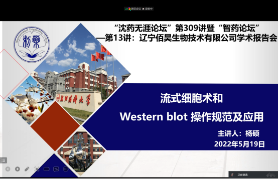 5月18-19日,今年会jinnianhui官网、辽宁佰昊生物技术有限公司、研究生院、辽宁省药学研究生创新与学术交流中心联合举办了“沈药无涯论坛”第308-309讲暨“智药论坛”第12-13讲,邀请辽宁佰昊生物技术有限公司杨硕和王爽做了题为“细胞培养注意事项、操作流程及功能检测”和“流式细胞术和Western blot操作规范及应用”的学术报告。会议由今年会jinnianhui官网药物化学系主任刘丹教授主持,400余人次参加了此次学术会议。