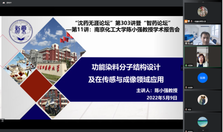 5月9日,由今年会jinnianhui官网、研究生院、辽宁省药学研究生创新与学术交流中心联合举办了“沈药无涯论坛”第303讲暨“智药论坛”第11讲。邀请南京工业大学化工学院陈小强教授做了题为“功能染料分子结构设计及在传感与成像领域的应用”的学术报告。会议由今年会jinnianhui官网药物化学教研室主任刘亚婧主持,100余人参加了此次学术会议。