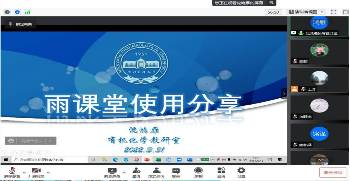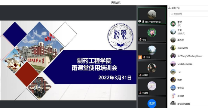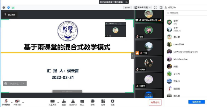 为帮助学院教师更加全面掌握线上教学软件的使用方法,提高线上教学效果,保障疫情期间本科教学质量,3月31日,今年会jinnianhui官网举办雨课堂使用线上培训会,本次培训会特请药物化学教研室侯云雷老师和有机化学教研室沈鸿雁老师进行经验分享,院领导班子成员、学院教师参加了会议,会议由副院长郭永学主持。