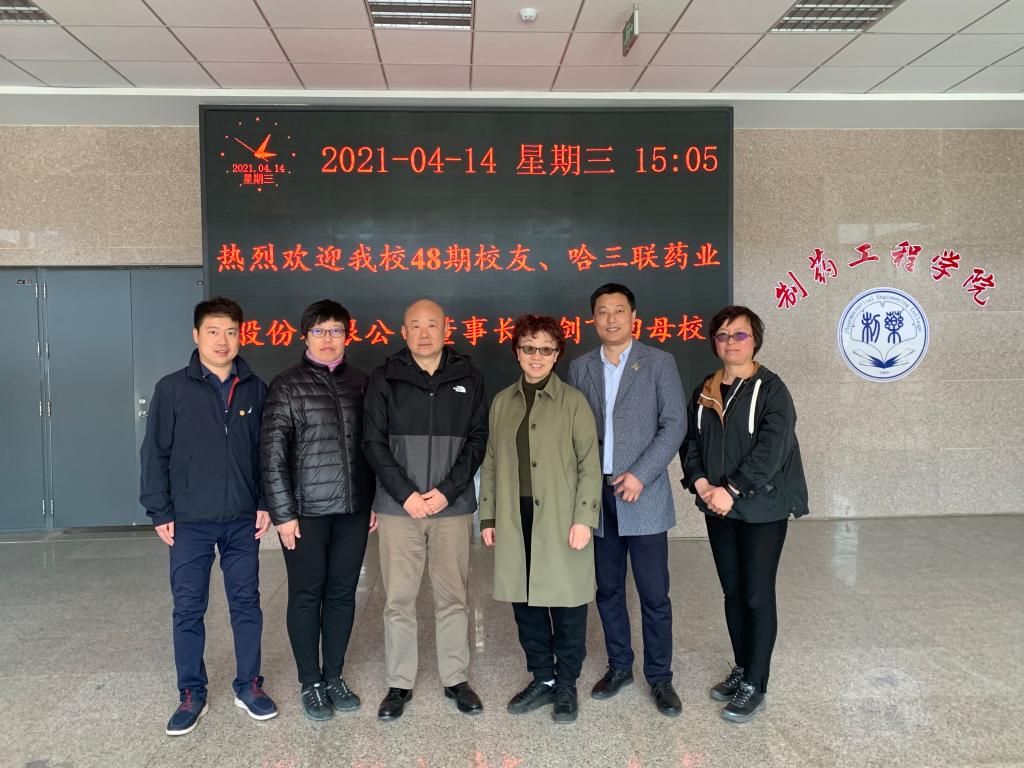 4月14日,我校48期校友、哈尔滨三联药业股份有限公司董事长秦剑飞、研发中心科学委员会秘书长胡玉庆一行访问今年会jinnianhui官网,院长赵临襄、院党委书记李哲、副院长赵燕芳、副院长郭永学、院长助理刘洋热情接待秦总一行并在学院241会议室举行交流座谈。学院研究生辅导员一同参加了座谈。