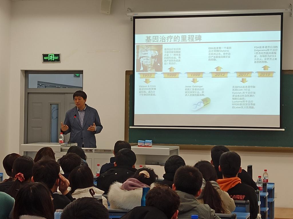 报告会上,孟庆斌副研究员介绍了基因治疗、自组装多肽和柱芳烃类超分子的发展背景以及其在药物递送载体方面的应用前景,分享了他的课题组在该项工作中所取得的丰富成果。并与到会的师生进行了互动,对相关学术问题进行了深入探讨。