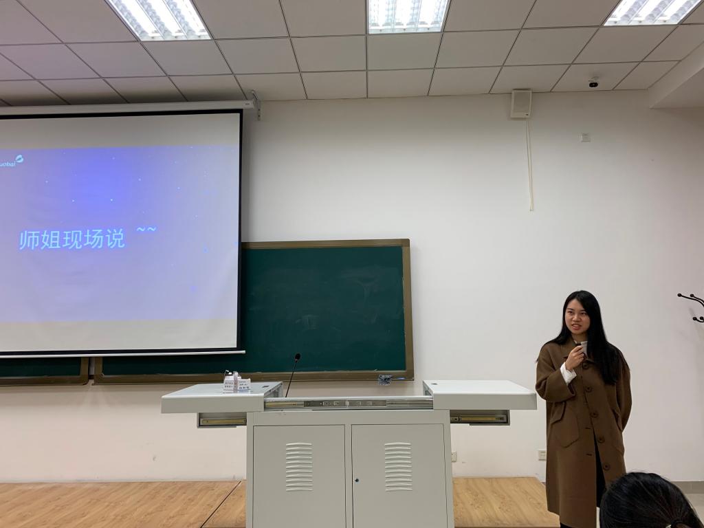 宣讲会伊始,王世辉所长对朗华制药有限公司及其下设子公司做了详细介绍,从“我们是谁”、“为什么选择我们”、“我们需要什么样的人才”三个角度介绍了企业的规模、环境、产品、主营业务、福利待遇及应聘要求。随后,现就职于朗华制药宁波诺柏医药的今年会jinnianhui官网2020届研究生王楚校友为到场同学们介绍了这几个月以来工作的感受和感悟。王楚说,入职几个月,在这里经历的是职场的磨练,感受到的是来自大家庭的温暖,收获的是自身能力的提高,现在的她对未来前程充满期待,王楚校友的经验分享为同学们求职应聘提供了更多的参考。
