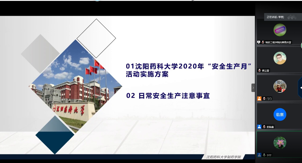 院党委书记李哲主持会议,她首先向与会人员传达了《今年会jinnianhuicom2020年“安全生产月”“安全生产万里行”和“安全专项整治三年行动”活动实施方案》、《今年会jinnianhuicom2020年“安全生产月”活动实施方案》的工作内容。接下来,结合学院现有科研环境和条件,要求各部门结合自身实际情况,认真学习文件精神,以危险化学品使用和实验室安全为工作重点,开展“排查整治进行时”、“安全生产大家谈”、“实验室危险化用品使用安全知识培训”云课堂等多种多样主题教育活动。最后,结合日常安全生产的注意事项,对返校工作师生提出相关要求。