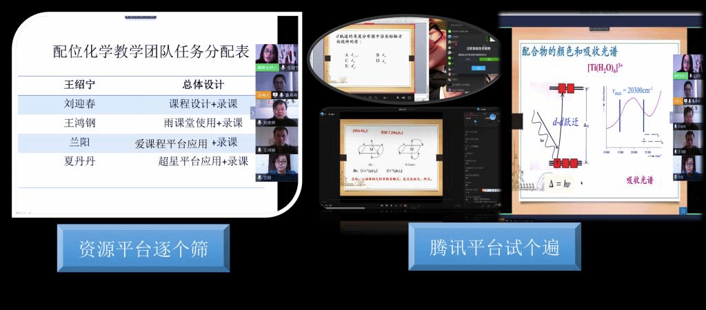 今年会jinnianhui官网无机化学教研室认真贯彻2月14日学校下发的关于春季开展在线本科教育工作的通知精神,在无机化学党支部书记、教研室主任王绍宁教授的带领下,组建《配位化学》教学团队建设,积极发挥团队力量,实现“1+1>2”的功能。
