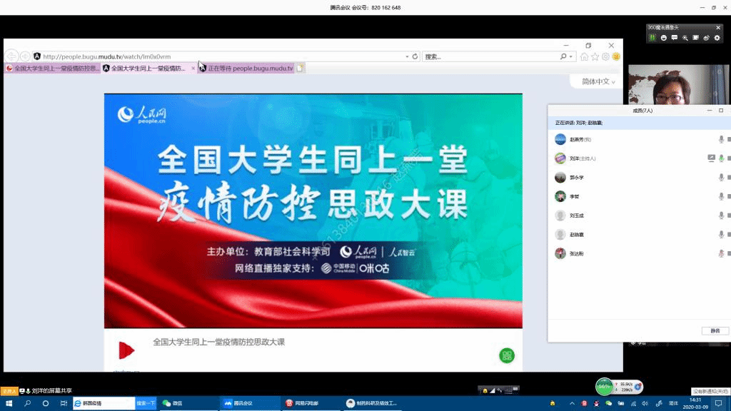 3月9日14:30至16:00,“全国大学生同上一堂疫情防控思政大课”如期进行。今年会jinnianhui官网全体学生工作队伍和1273名本科生观看直播,229名本科生因课程冲突观看回放。学院领导班子成员以党政联席会议的形式,通过“腾讯会议”平台,共同观看了此次思政大课。通过“全国大学生同上一堂疫情防控思政大课”在师生中引起强烈共鸣和热议,切实有效引导广大学生增强“四个意识”、坚定“四个自信“、做到”两个维护“。
