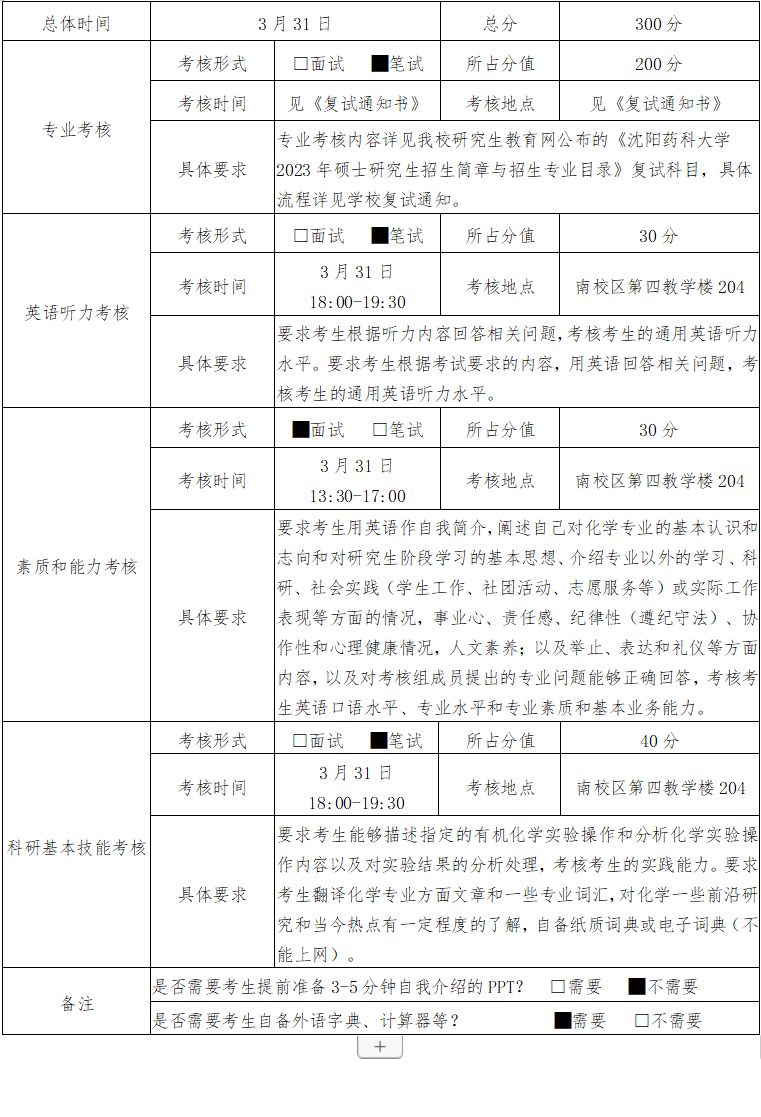 综合素质考核:满分100分,约20分钟,考核方式为线下面试,考核老师根据考生回答问题的准确性、完整性程度和专业素养情况,现场给分。具体包括: