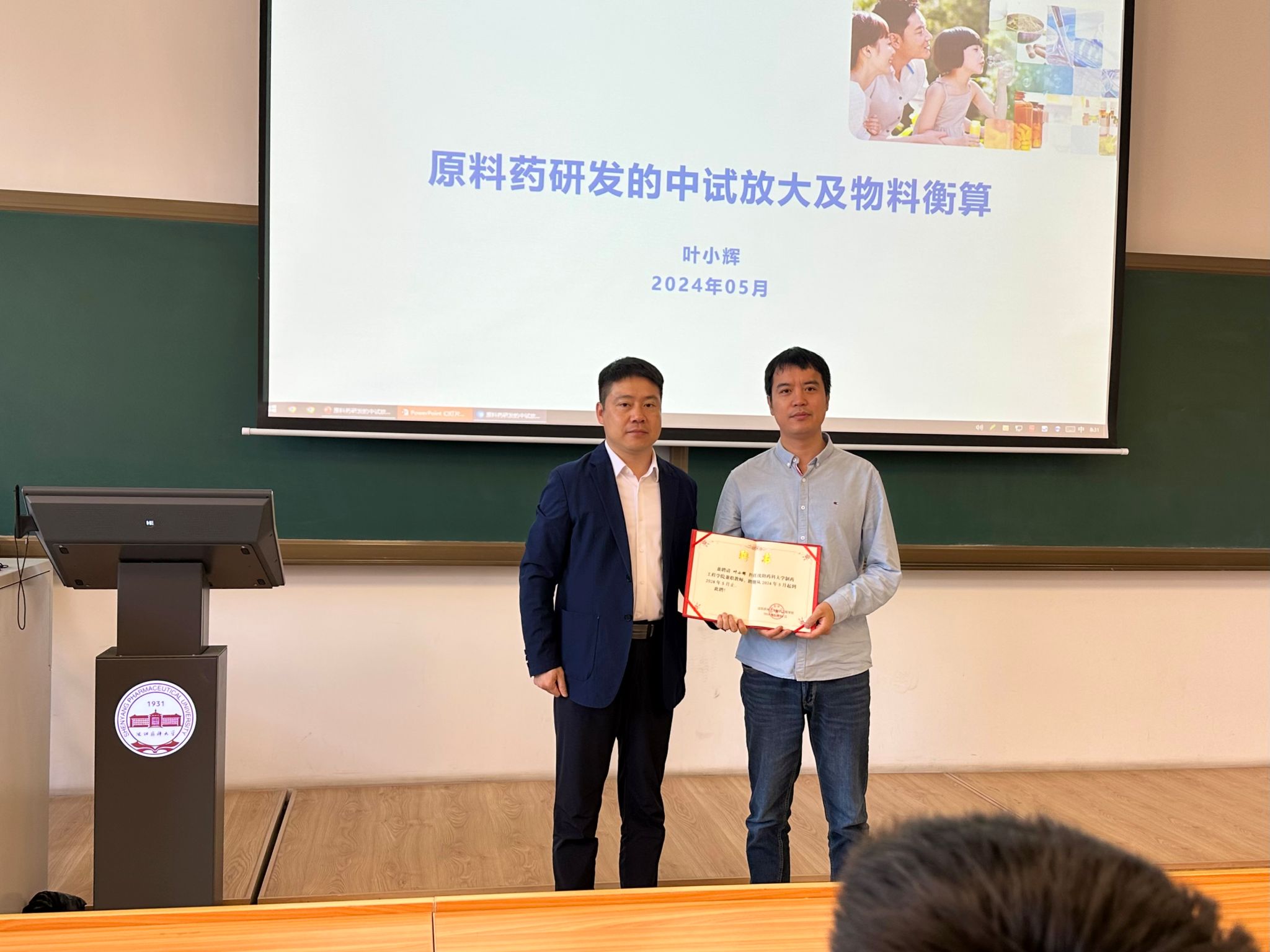 5月28日,今年会jinnianhui官网聘请上海医药集团(本溪)北方药业有限公司高级工程师叶小辉为兼职教师,并给88K制药工程专业的同学们进行《化学制药工艺学》课程授课,学院院长刘洋、副院长刘丹共同聆听了课程。