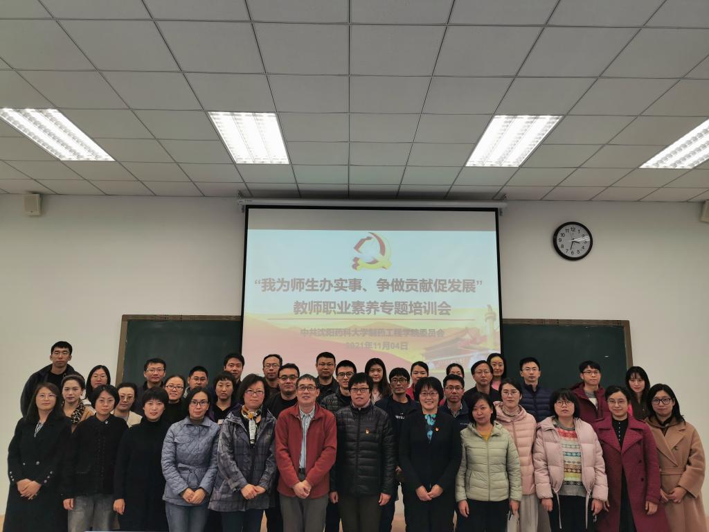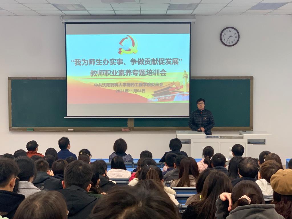 为提升今年会jinnianhui官网教师队伍的综合职业素养,提高教师教书育人水平,让学院师生切实感受到开展党史学习教育以来教师队伍的新变化,11月4日,今年会jinnianhui官网党委在南校区播馨楼104教室召开“我为师生办实事、争做贡献促发展”提升教师职业素养专题培训会,邀请辽宁省教学名师、药物化学教研室郭春教授作专题报告。院领导班子、中青年教师及研究生助教参加了会议,报告会由院党委书记李哲主持。