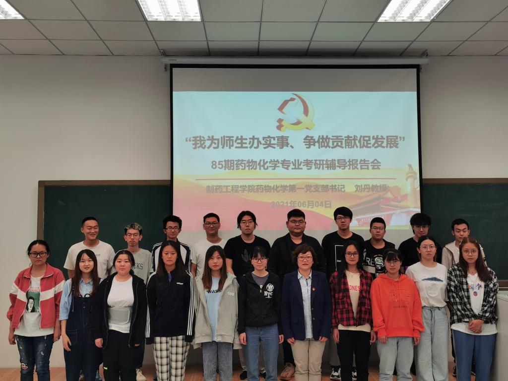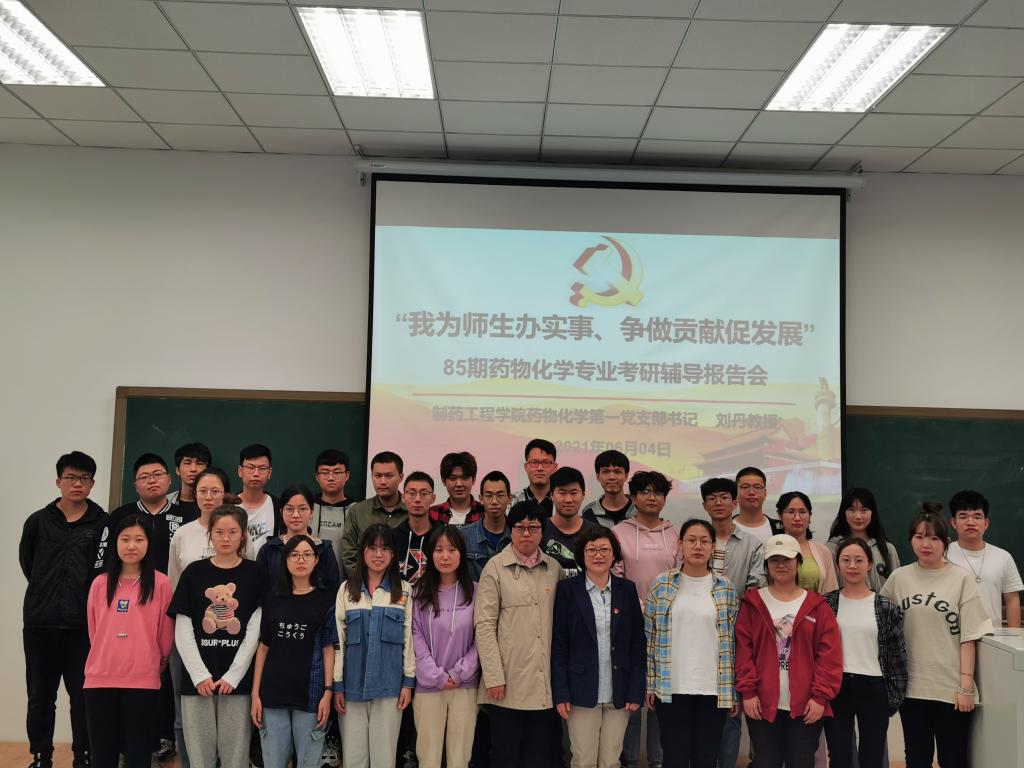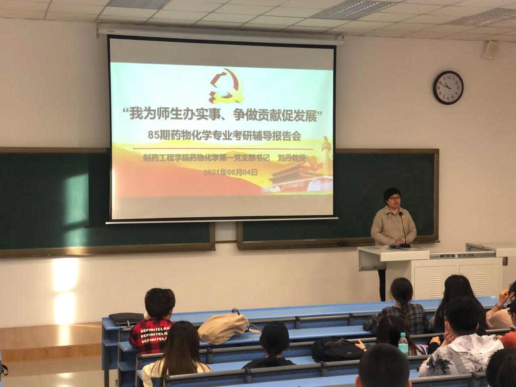 为更好地促进党史学习教育走深走实,充分发挥今年会jinnianhui官网药物化学第一党支部辽宁省高校“双带头人”教师党支部书记工作室的示范作用,将“我为师生办实事 争做贡献促发展”落到实处,6月4日晚,在第四教学楼204教室,药化第一党支部书记刘丹教授为85期药物化学专业学生做考研辅导报告,药化一班、药化二班共55名有意向参加考研的同学参与了此次考研指导会。院党委书记李哲出席并主持报告会。
