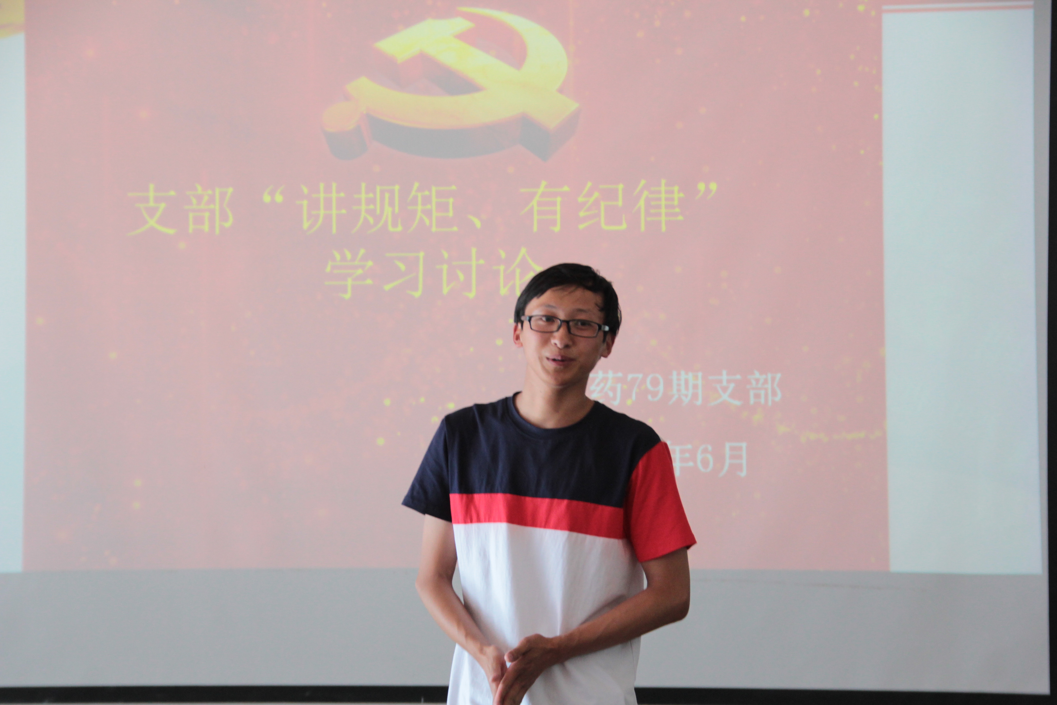 按照支部“两学一做”学习教育计划安排,6月16日,79期学生党支部举行了“讲规矩、有纪律”专题学习讨论,39名党员参加了学习讨论。讨论会由支部书记唐丹主持。